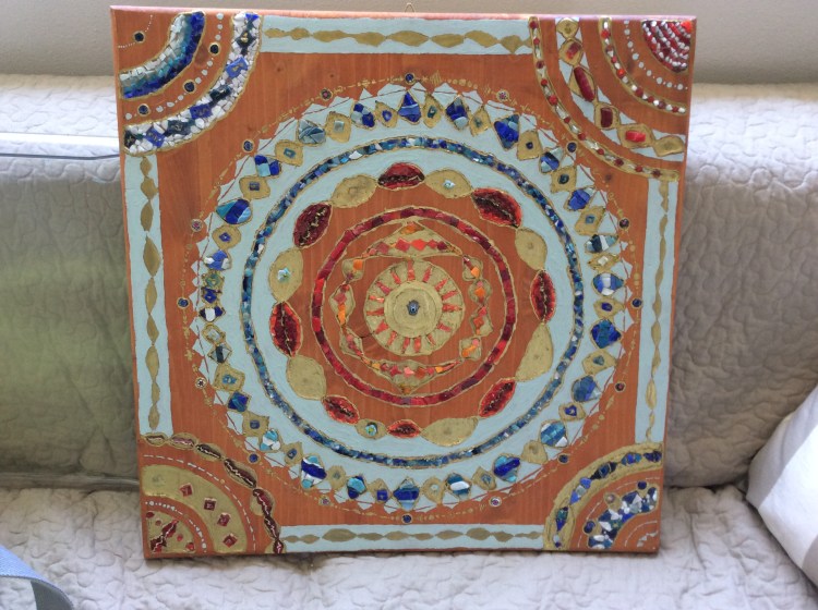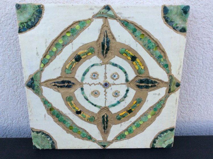 glass wood mandala pomegranates