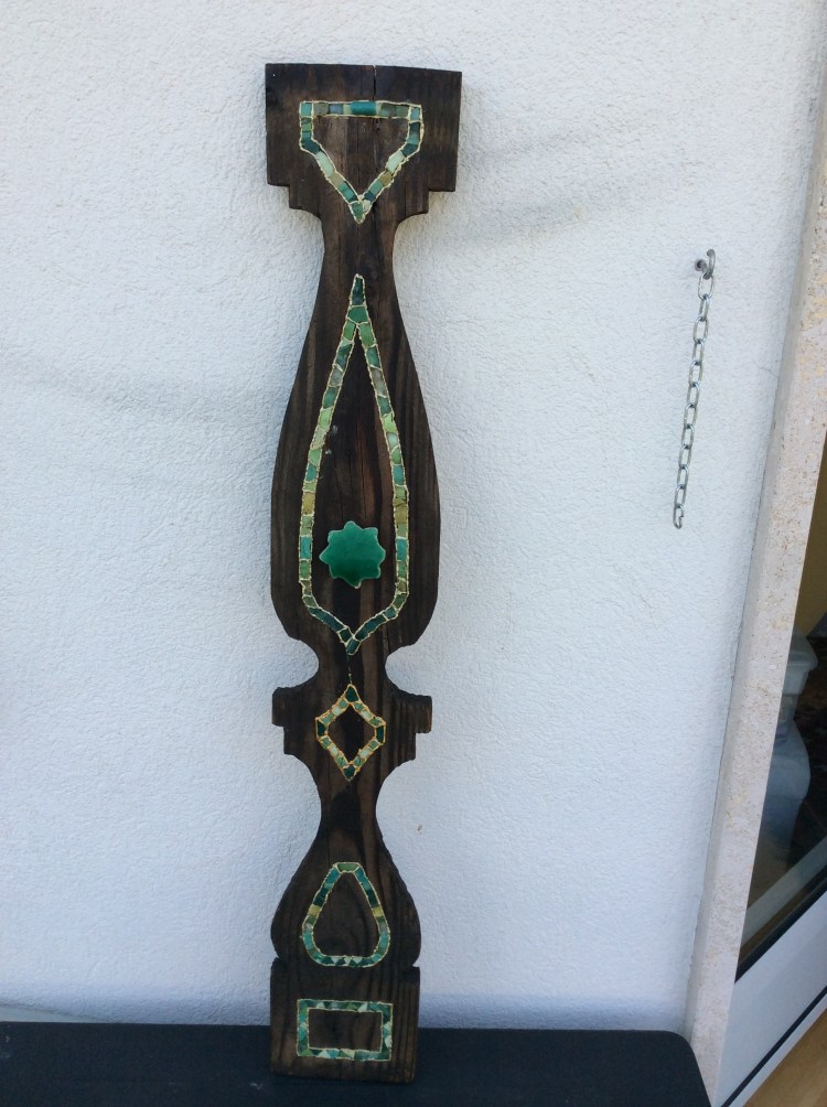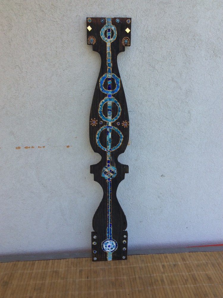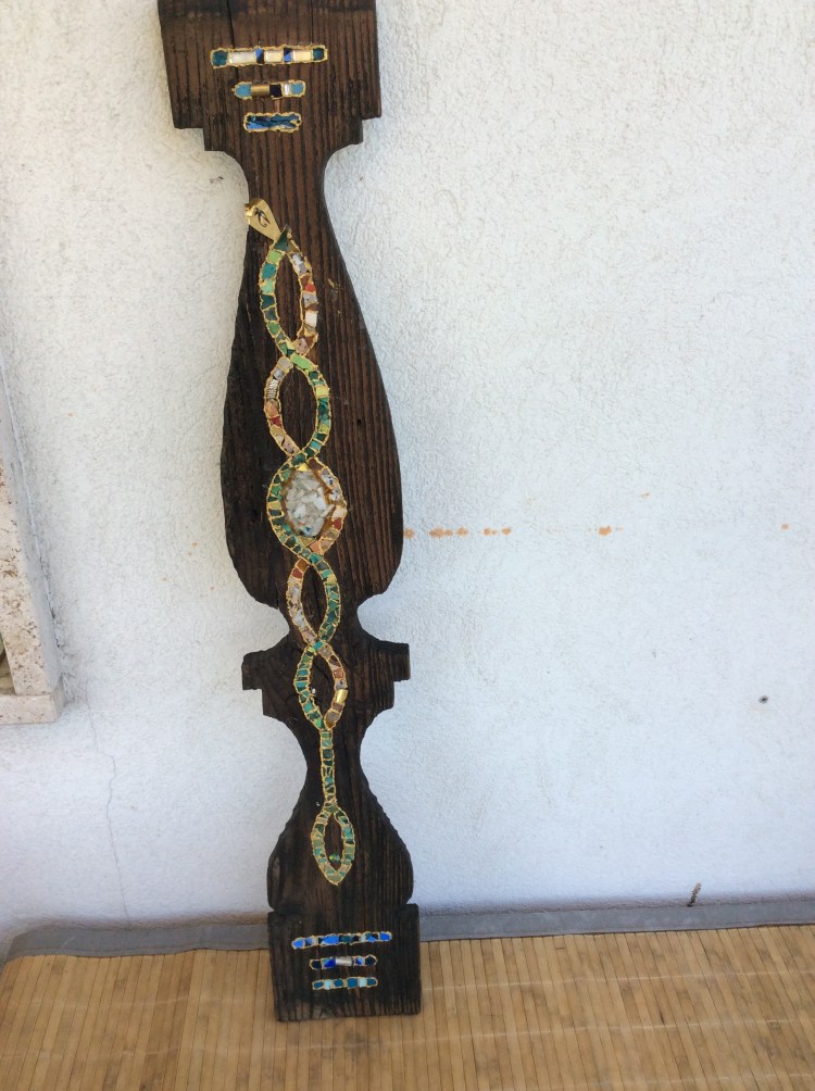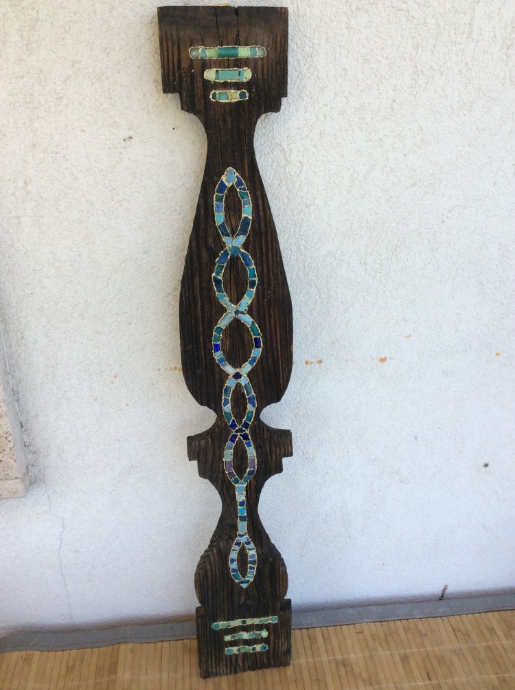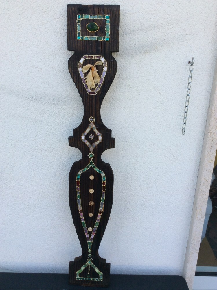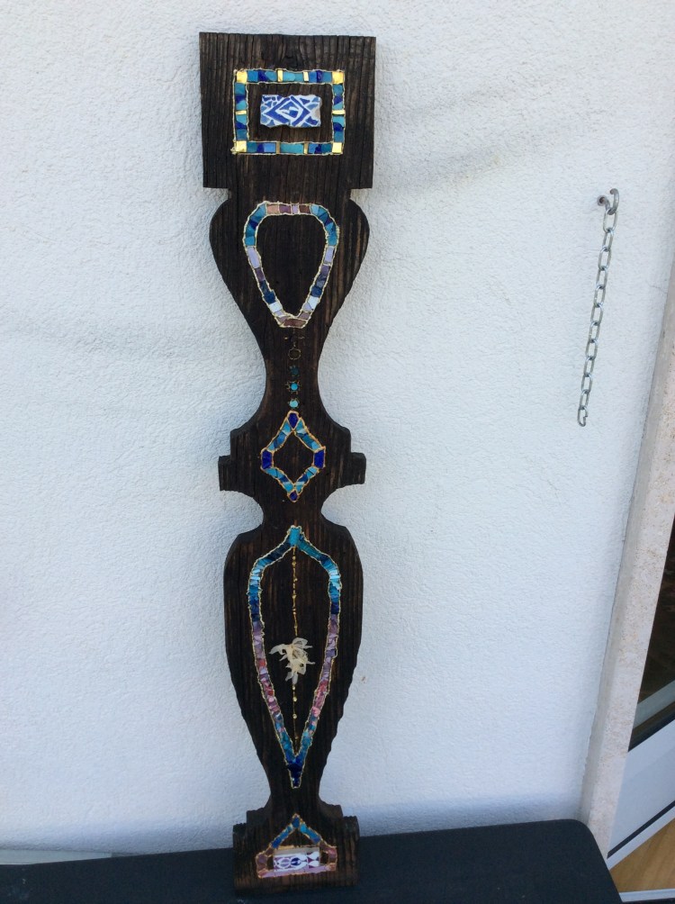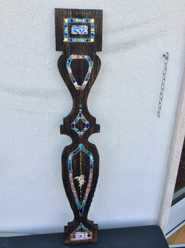 An old wooden terrace was demolished for renovation and I recovered the old panels. I was fascinated by touching the wood that was grayed out and worn by the weather: rain, sun, wind and snow.These panels, similar to totems, come from a village that was a war front and they are more than a hundred years old and have seen soldiers, religious processions, schoolchildren and tourists pass under them: they were destined for firewood and, arrived by chance in my hands, they underwent this unexpected transformation